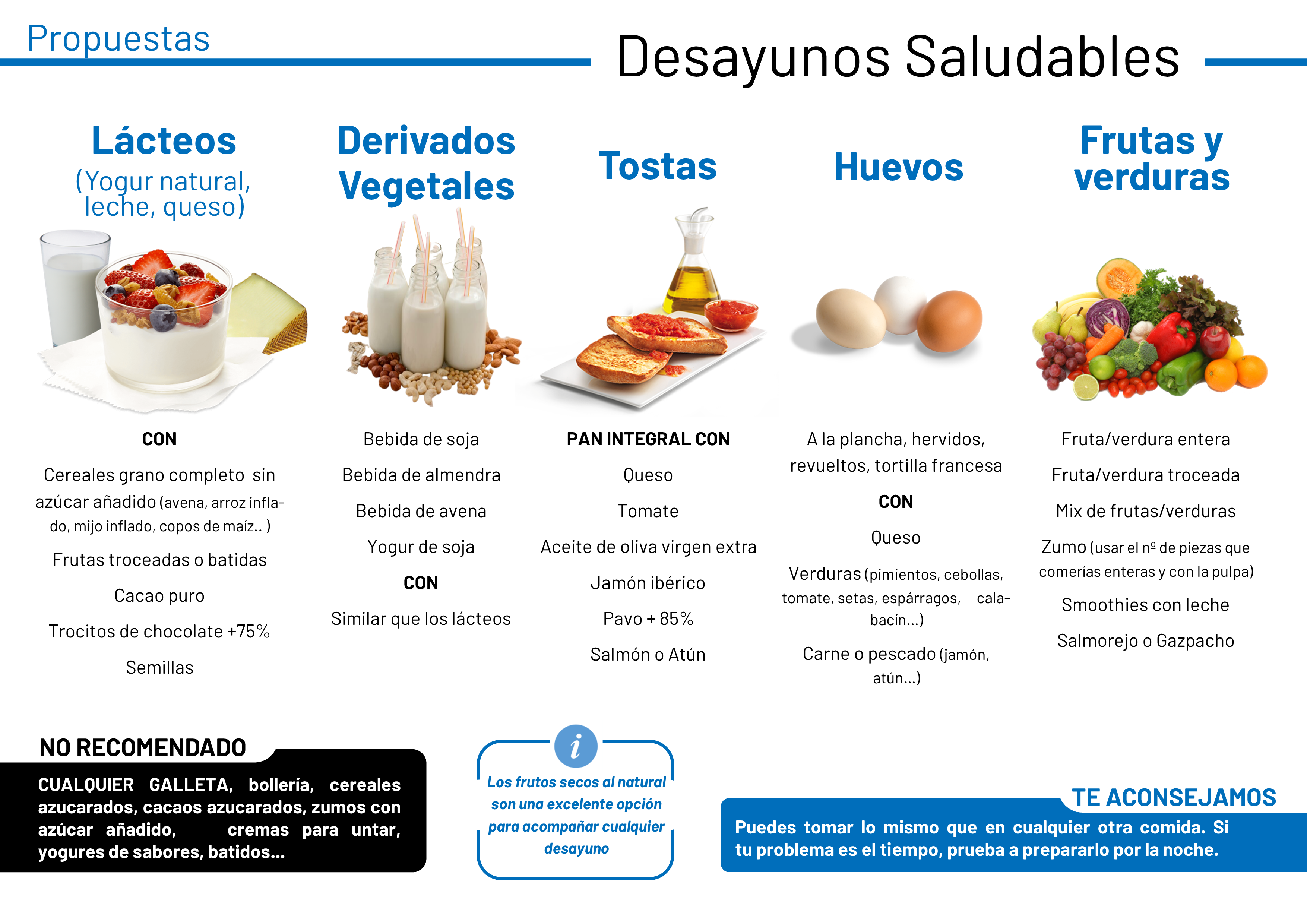 Os dejamos esta guía resumen para desayunos que también puedes descargar para imprimir en el siguiente enlace en la que presentamos diferentes alternativas saludables. Para cualquier duda os invitamos a contactar mediante el consultorio ONLINE.
